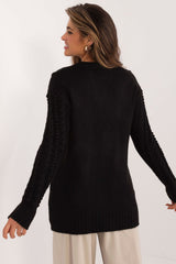 A long women's sweater with a casual character, perfect for everyday wear and work. Made of soft acrylic with additives, it provides comfort and durability. The varied texture of the material adds a stylish look to it, and the classic round neckline makes it versatile and easy to match with various wardrobe items. The sweater will work perfectly on colder days, guaranteeing warmth and comfort throughout the day.