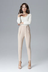 Elegant trousers with a loose cut, finished with impressive creases. Model perfectly emphasizes waist.
