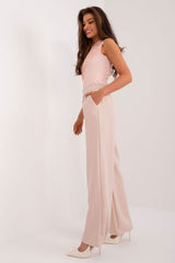 Women's unbuttoned pants, made of high-quality polyester, are an elegant and classic choice, ideal for various occasions, especially for work or formal meetings. Their smooth material gives them a sophisticated touch, making them a perfect addition to an elegant closet. The high waist adds elegance to the pants, emphasizing the waist and creating proportions that are both stylish and comfortable. The leg style is straight, which adds versatility and timelessness to the pants. Unbuttoned, these pants are extremely comfortable while looking sleek and neat. Side pockets add to the practicality, allowing you to store small items or tuck your hands conveniently. The polyester material is not only durable, but also easy to maintain. It makes the pants look neat and elegant at all times. This is an excellent choice for women who appreciate comfort, while caring about the aesthetics of their clothing. These elegant women's unbuttoned pants are an excellent choice for women who prefer a classic yet modern style. They are perfect for everyday situations at work, as well as for more formal events, where elegance goes hand in hand with comfort.