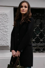 Single-breasted coat with a tailored cut. Fastened with three buttons with a classic collar. It has a lining, practical pockets and decorations in the form of buttons on the sleeves. Polish production.