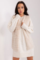 Fur vest in graphite color, with hook-and-eye fastening, has lining.