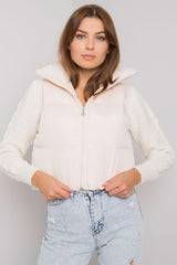Vest in the color of khaki with a concealed hood. Zipped vest.