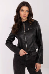 A women's eco-leather jacket is the perfect choice for the transitional season. Made of high-quality materials, combining polyurethane, cotton, polyester, and viscose, it ensures a stylish look and comfort when worn. The classic, smooth design makes the jacket perfect for various stylizations, and its casual character makes it an ideal element of everyday outfits. The short cut emphasizes the silhouette, and the long sleeve provides protection from the cold. The jacket has a practical zip fastening and lining, which increases comfort of use. This is an excellent proposal for women who are looking for a fashionable and versatile jacket for everyday wear.