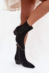 Women's ankle boots made of natural suede are an elegant proposition for colder days. Rounded toes add subtlety to them, and zip closure ensures comfort. Insulation with a shoe blanket guarantees warmth, and a block heel provides stability and comfort. These ankle boots perfectly complement various stylizations, combining functionality with a fashionable appearance.