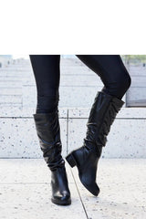 Black creased Angelico boots are an elegant and practical choice for colder days. Their flat heel and almond-shaped nose add a chic touch, and they fit both everyday and more formal outfits. The zipper on the inside makes them easy to put on, and the insulation provides comfort and warmth during winter walks. Made of durable plastic, they are weatherproof. These timeless boots combine classic and stylish, and will be a perfect addition to your closet for any occasion.