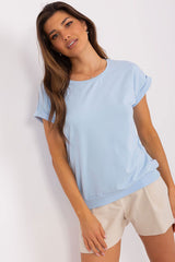 Blouse with short sleeves and a round neckline. A decorative heart-shaped mesh insert on the back.