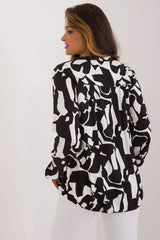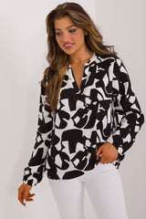 Casual women's blouse, perfect for everyday wear and work. Made of ecological viscose, it combines comfort and environmental responsibility. The printed pattern gives the blouse a unique character, and the puffy, long sleeve adds style and elegance. The V-neck subtly accentuates the neckline. The standard length makes the blouse perfect for various stylizations, from office to casual. It is an ideal choice for women who appreciate fashion, comfort, and care for the planet.