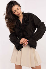 Elegant women's shirt with a classic cut, perfect for various occasions for work, business meetings or everyday wear when you care about a stylish look. Made of high-quality cotton, it provides comfort and perfect fit. Smooth material emphasizes the minimalist yet elegant character of the shirt. A standard-length model with long sleeves finished with cuffs adorned with delicate lace. The stand-up collar adds elegance, and the jabot in the front, also finished with lace, gives the whole a unique, feminine touch. The buttoned shirt is a combination of classic and fancy details, perfect for skirts, elegant trousers or suits.