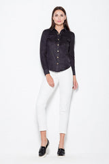 Long sleeve suede shirt with metal buttons. Classic cut model fits perfectly with tight trousers.