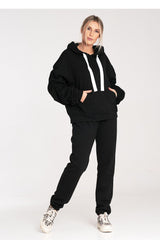 Hoodie made of thick cotton with ribbing, with a large pocket sewn on the front. Long, wide, ornately pleated sleeve.