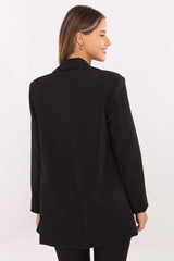 An elegant women's blazer of standard length is a classic that will work well both at work and at formal meetings or in everyday stylizations. The buttoned model is equipped with shoulder pads, which beautifully emphasize the silhouette and add an elegant character. The blazer has long sleeves, a smooth material structure, and a subtle decorative brooch on the lapel, which is a stylish accent. Made of high-quality fabric, a combination of polyester and elastane, ensures comfort and proper fit. The inner lining provides an aesthetic finish and durability of the cut. It is a timeless proposition, perfect for pairing with classic trousers, a skirt or a dress, creating elegant stylizations for various occasions.