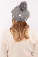 A cute and stylish winter beanie that combines comfort and fashionable design. Made of soft, pleasant to the touch material, it perfectly protects against the cold, providing warmth even on cold days. The cap is distinguished by an original design with decorative dots, which give it a subtle charm and modern character. At the top is a large, fluffy pom-pom, which is a fashionable accent, adding lightness and energy to the cap. The elastic finish ensures a perfect fit to the shape of the head, and the pleasant-to-wear texture makes it ideal for everyday winter styling. It's a great choice for women who appreciate the combination of functionality with a delicate decorative touch.