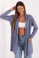 Casual women's cardigan in the form of a light cover-up, made of a soft blend of viscose, polyamide, and polyester. Smooth material and classic cut make it a versatile wardrobe staple, perfect for everyday wear and work. A model without fastening, of standard length, with long sleeves and practical slip pockets. Comfortable and stylish, it will perfectly complement many casual outfits.