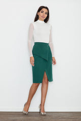 Cotton skirt with a front flap is a perfect solution for elegant women who value style and comfort. Thick belt perfectly accentuates the waist.