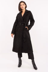 Stylish boucle women's coat is an ideal proposal for the autumn/winter season. It stands out with its characteristic, varied texture of the material and casual style, which will work well in both everyday stylizations and as a comfortable cover-up for work. The long form model with lapels looks elegant and modern. It has a double-breasted button fastening and a tie belt, which allows you to emphasize the waist and give the silhouette feminine proportions. Functional slip pockets and lining provide comfort when wearing. Light, without additional insulation, it will be an excellent choice for colder days as a transitional coat with a universal character.
